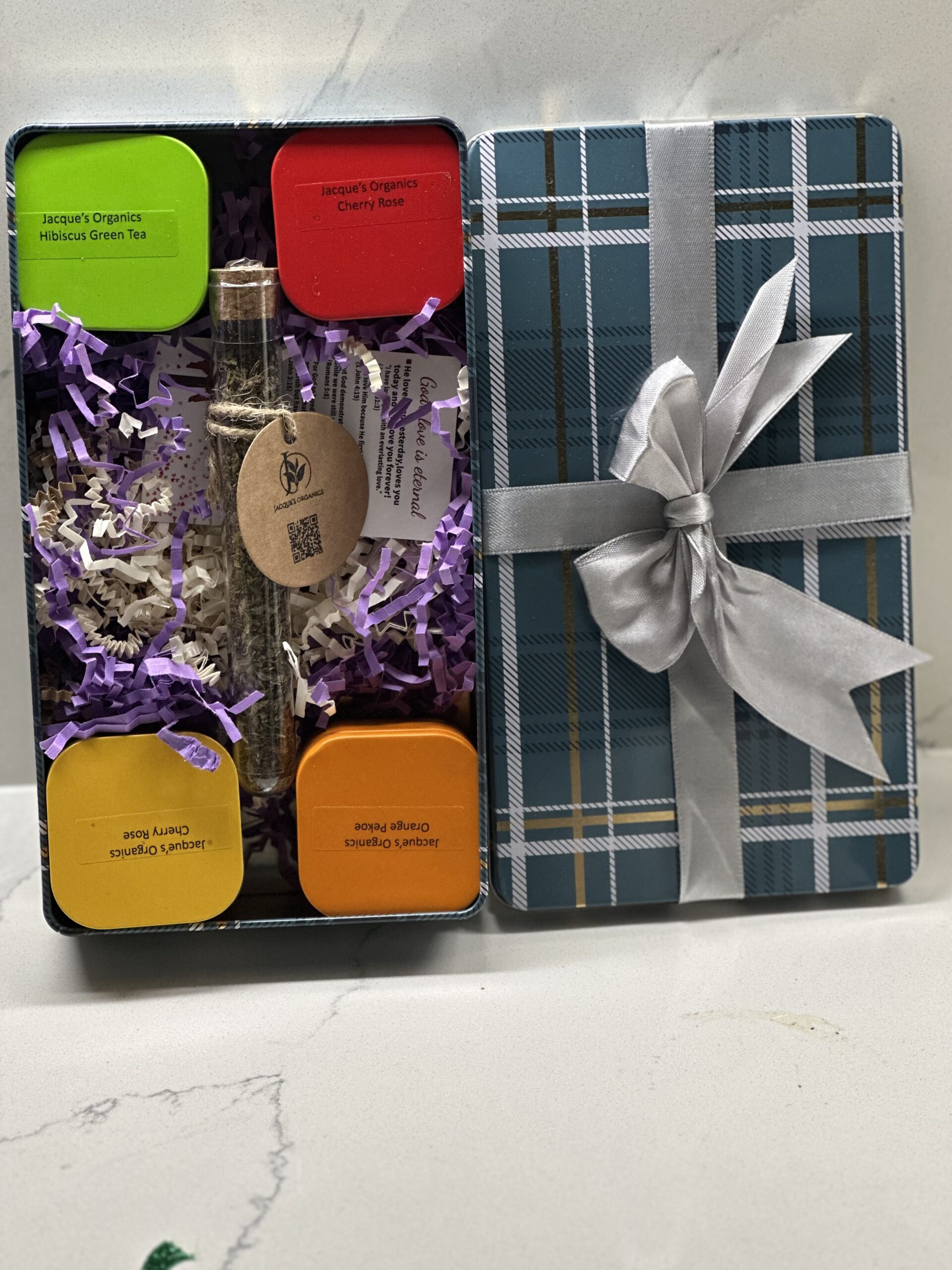 Tickle your taste buds or baffle a buddy with our Tea Samples gift set at Jacque’s Organics. This collection boasts our crème de la crème of herbal teas, handpicked for an experience that’s nothing short of legendary. Ideal for unwinding or pampering, savor organic awesomeness and top-notch quality, all wrapped up in a pretty package. Snag your new favorite brew today!